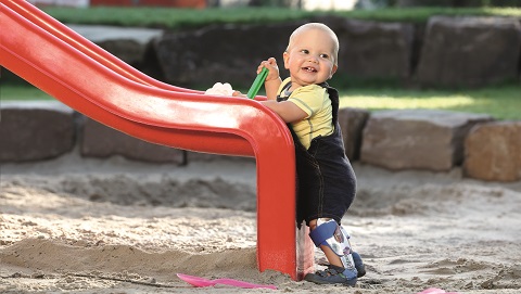 Mit unterschiedlichen, individuell angepassten Orthesen stellen wir für unsere kleinen Patienten eine möglichst hohe Bewegungsfreiheit sicher. Die passende Versorgung ermöglicht es Ihrem Kind, ohne wesentliche Einschränkung zu spielen und Sport zu treiben. Gelenkbandagen für die Behandlung von Wachstumsschmerzen finden sich im Sortiment von Balgrist Tec ebenso wie Stabilisierungs- oder Entlastungsorthesen zur Therapie nach einer Verletzung (beispielsweise Meniskusriss). Für unsere kleinsten Patienten mit einer Hüftdysplasie bieten wir Spreizschienen in jeder Grösse an – damit die Hüftgelenke Ihres Babys vollständig nachreifen können.